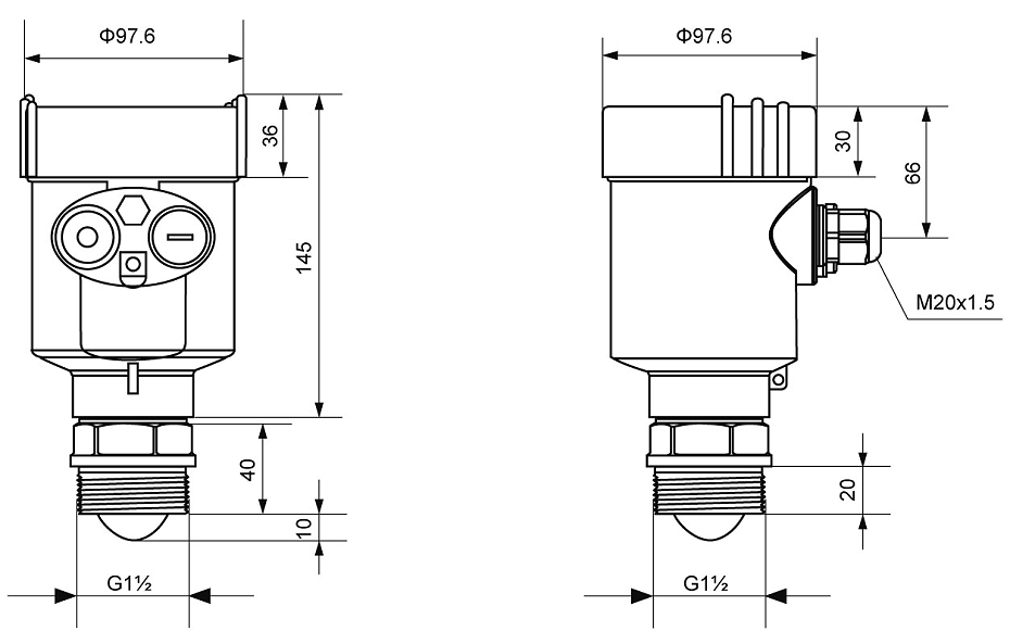 过程连接:G1½ A/1½NPT螺纹/法兰≥DN50